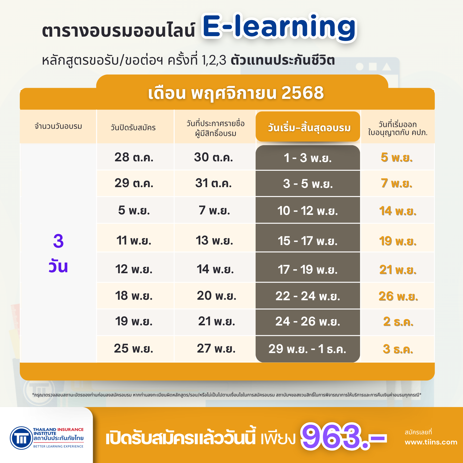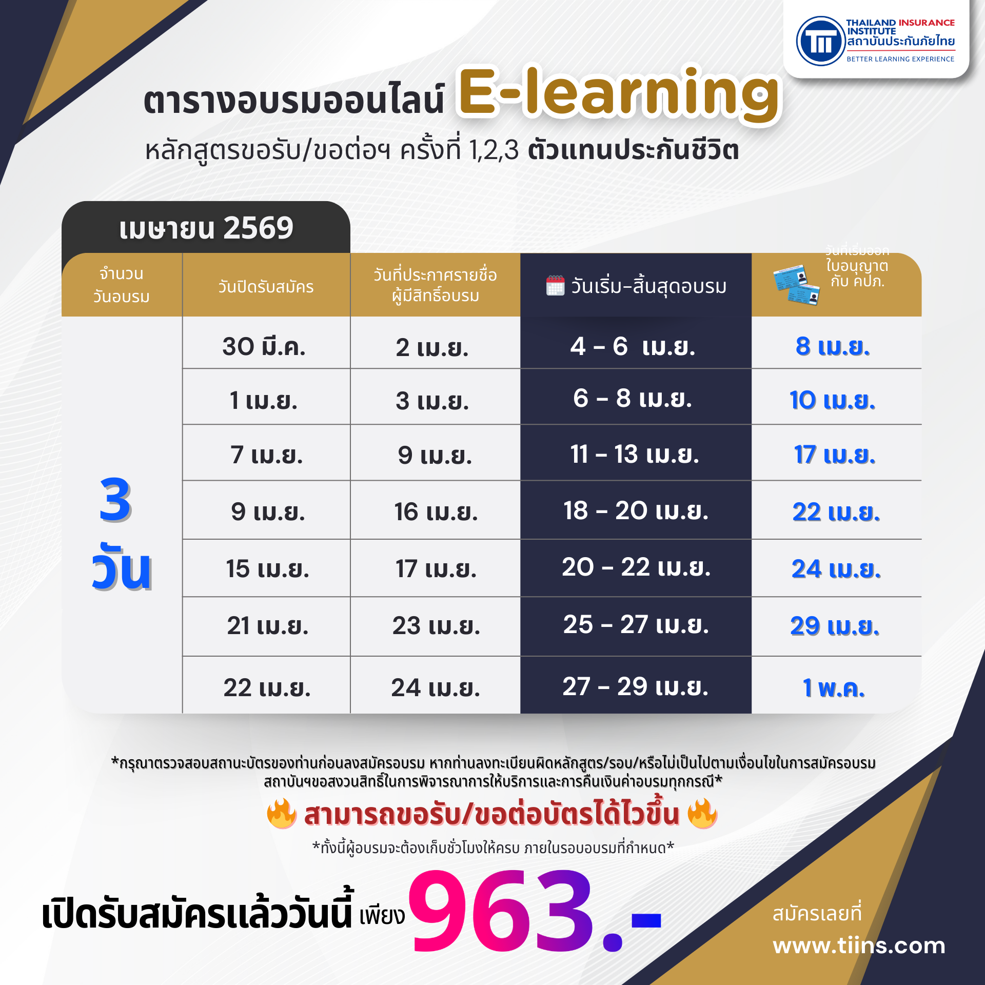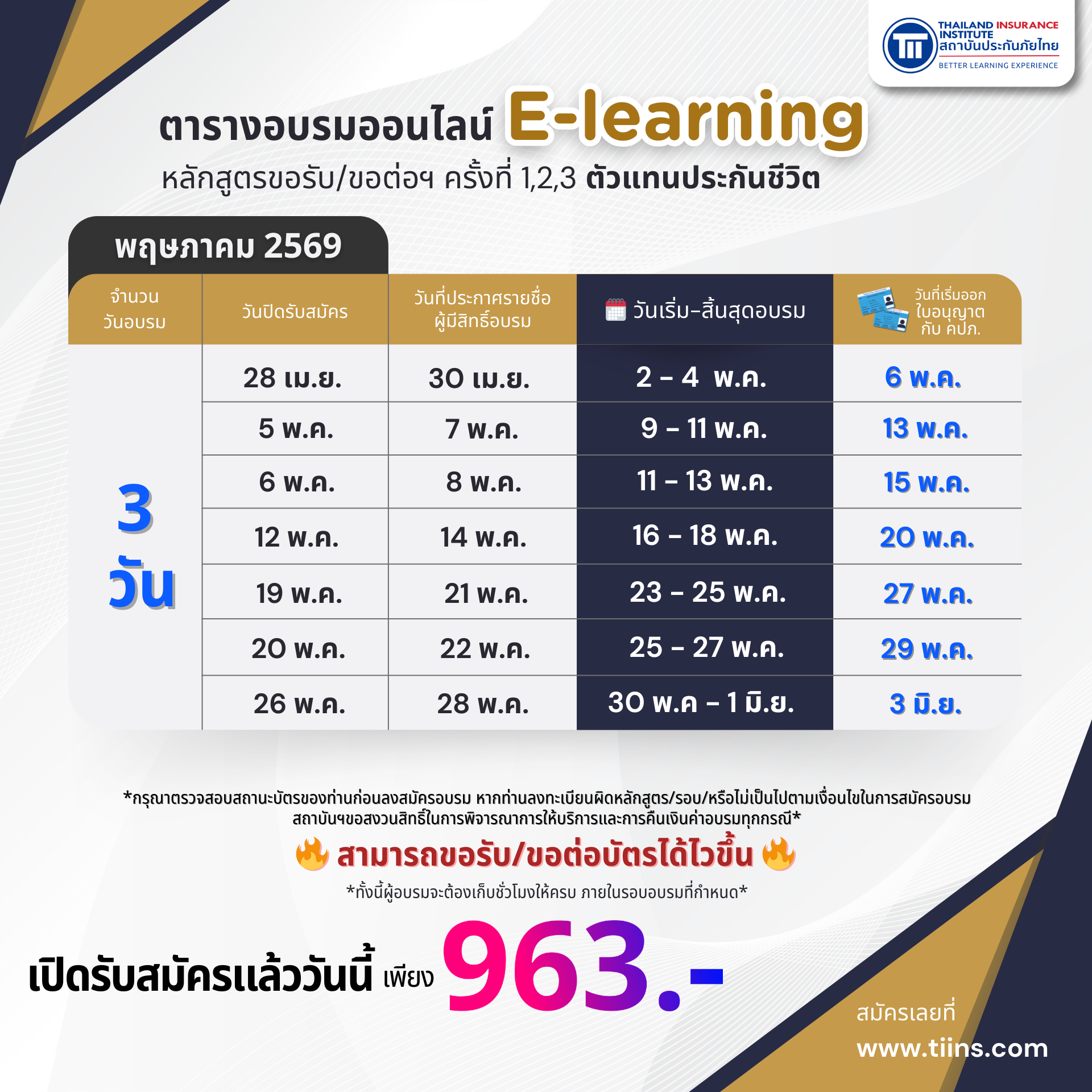 อบรมขอรับ/ขอต่อใบอนุญาตตัวแทนประกันชีวิตและวินาศภัย ครั้งที่ 1-3