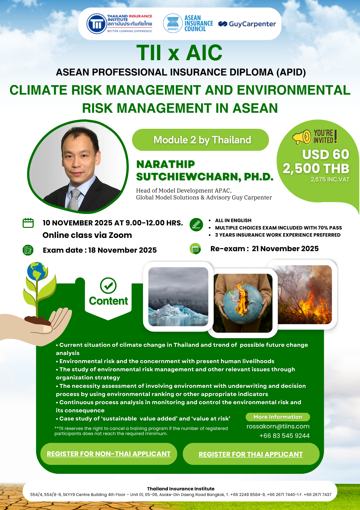 (APID) หลักสูตร ASEAN Professional Insurance Diploma {เรียนภาษาอังกฤษ}