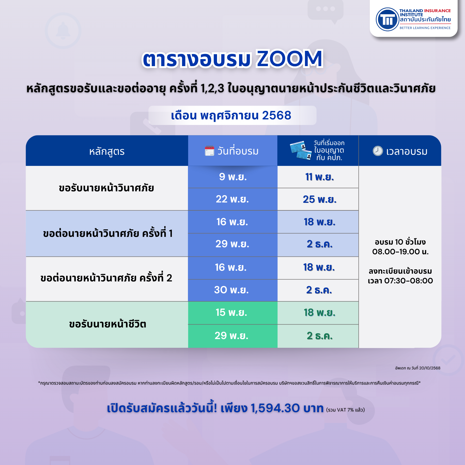 - หลักสูตรนี้เหมาะสำหรับผู้ที่จะขอต่ออายุใบอนุญาตนายหน้าประกันชีวิตและวินาศภัย