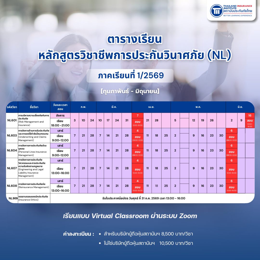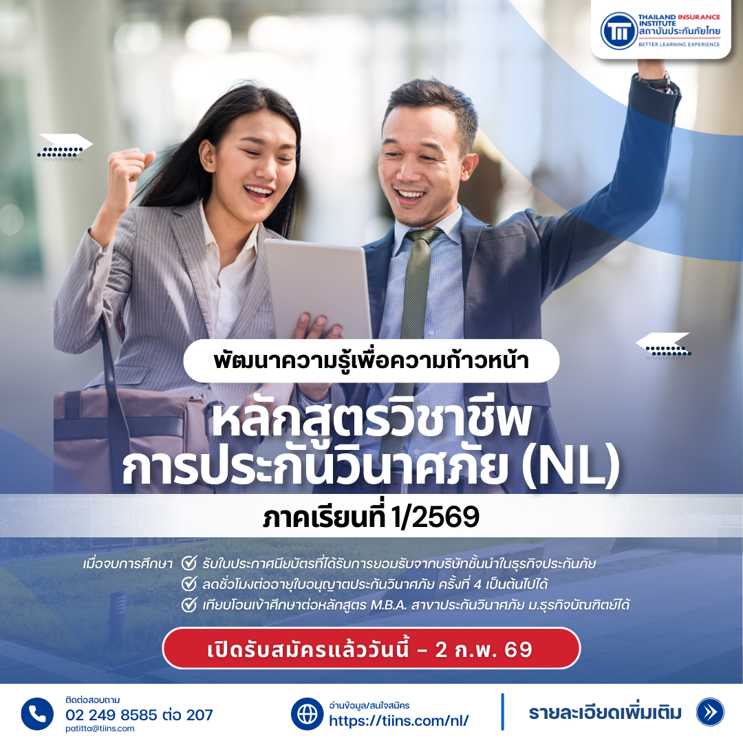 ปิดรับสมัคร หลักสูตรวิชาชีพประกันวินาศภัย (NL) ภาคเรียนที่ 1/2569