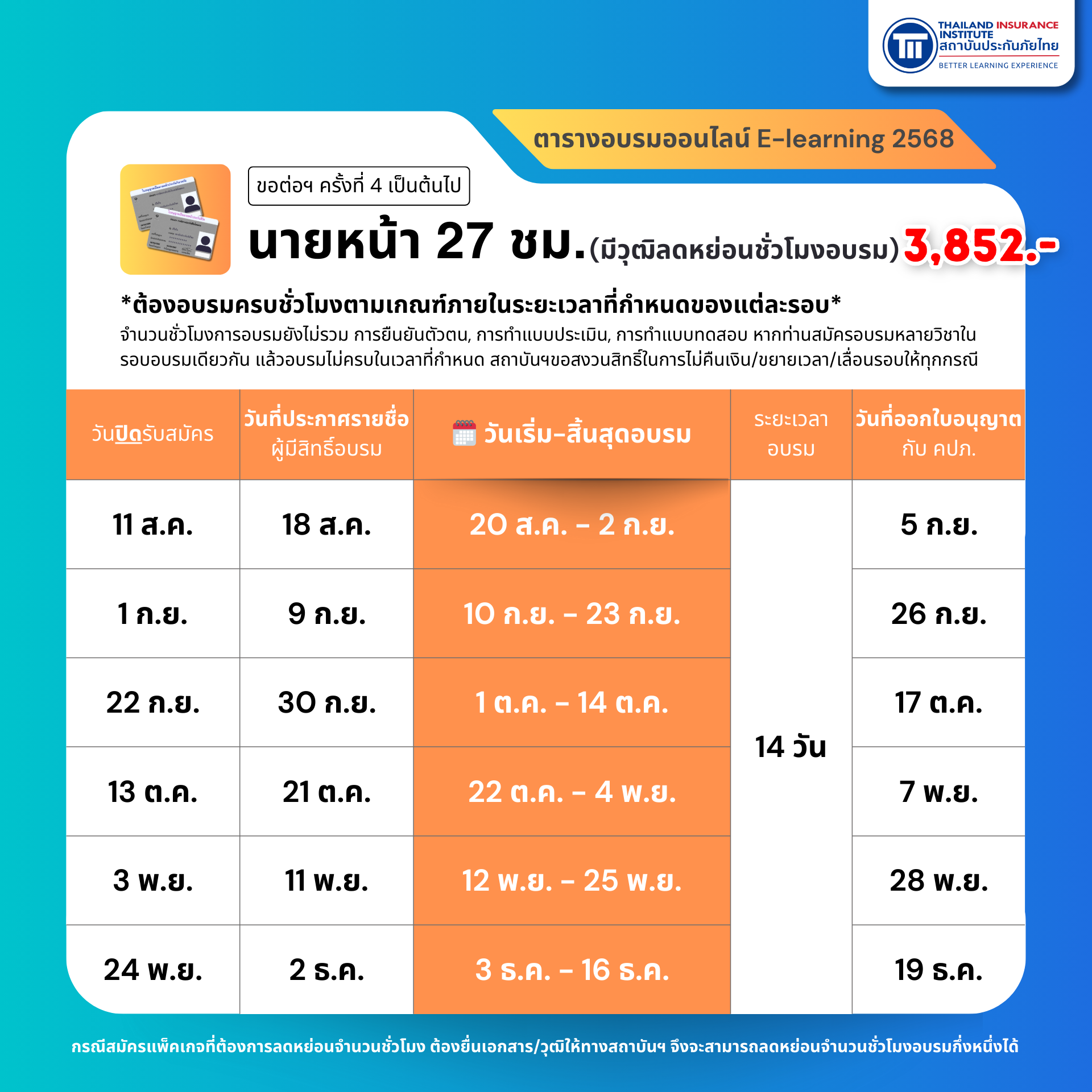 - นายหน้า 27 ชั่วโมง (ระยะเวลาอบรม 14 วัน)