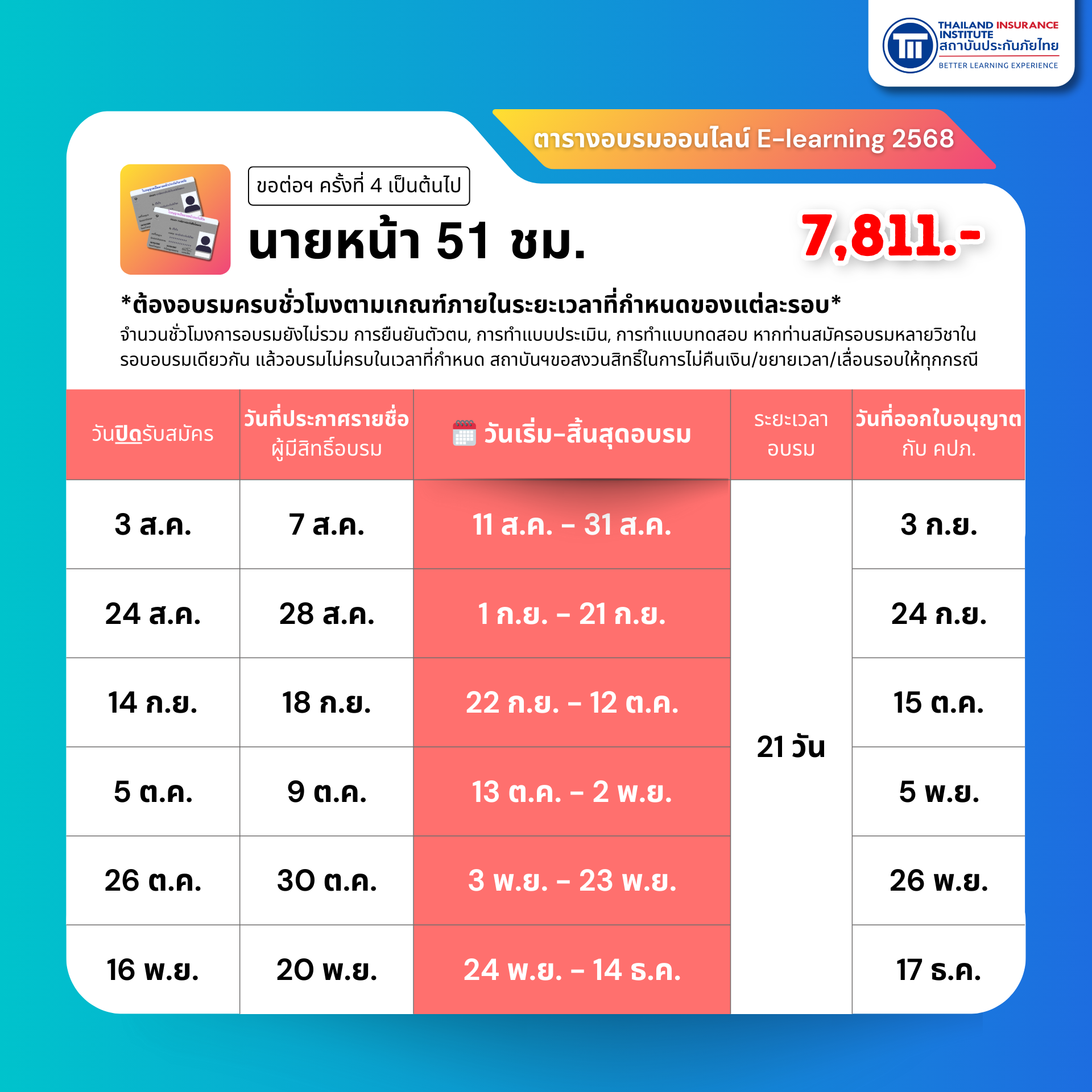 - นายหน้า 51 ชั่วโมง (ระยะเวลาอบรม 21 วัน)