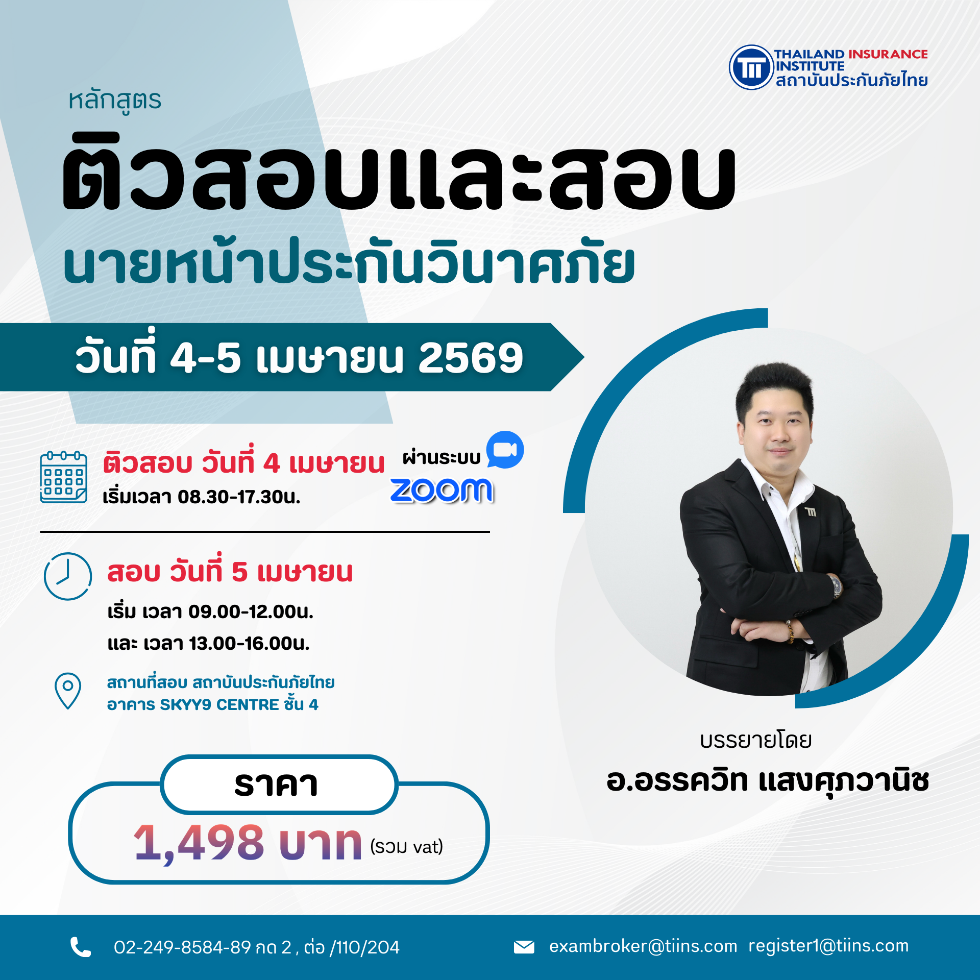 *ทั้งหมดจบภายใน 1 วัน ที่ บริษัท ที.ไอ.ไอ. จำกัด (สถาบันประกันภัยไทย) อาคาร SKYY9 Center ถ. อโศก-ดินแดง กรุงเทพฯ